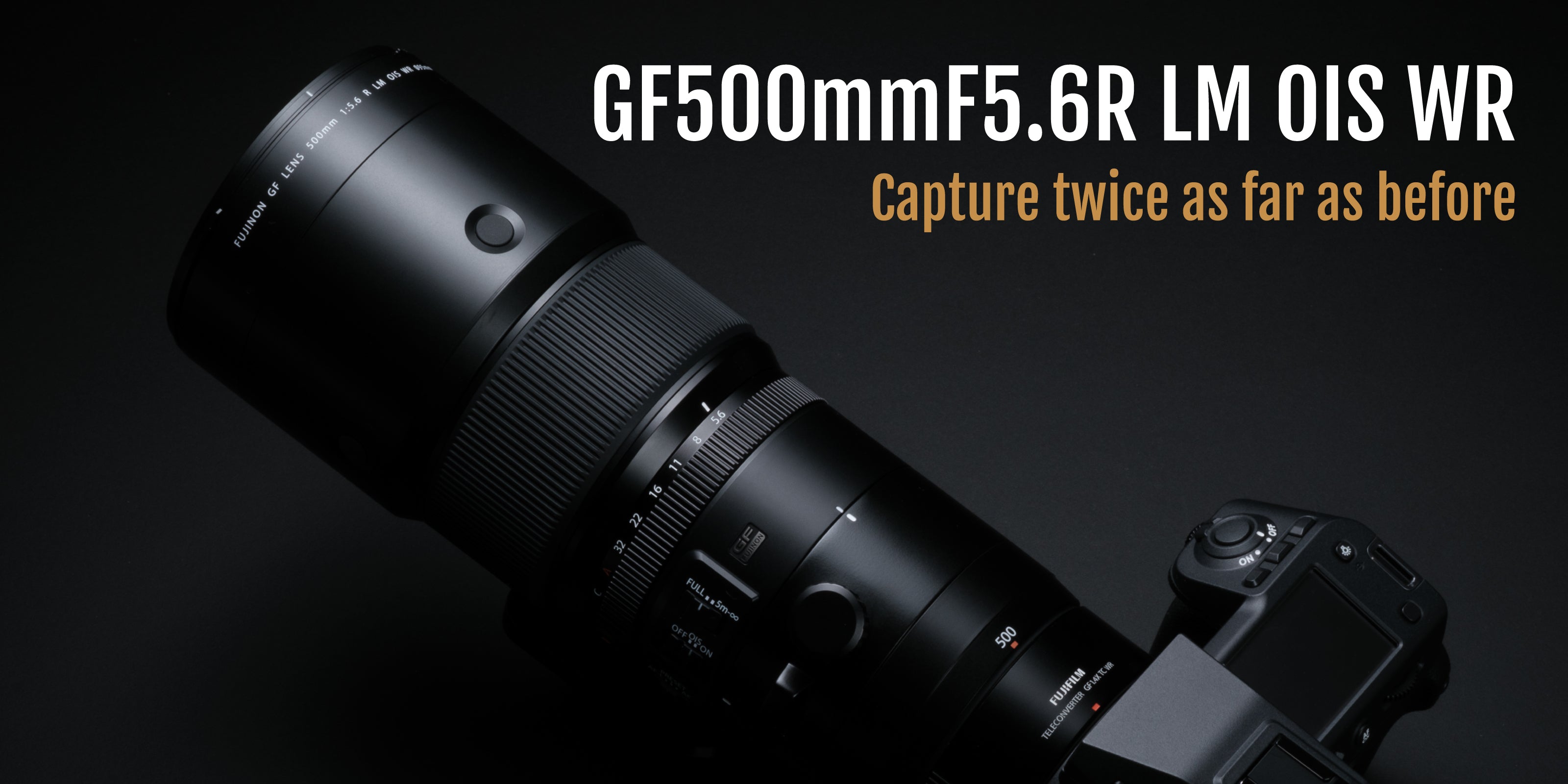 This telephoto lens with a focal length of 500mm captures subjects twice as far away as the GF250mmF4 R LM OIS WR lens, making it ideal for landscape, wildlife, or sports photography that requires a distant perspective.