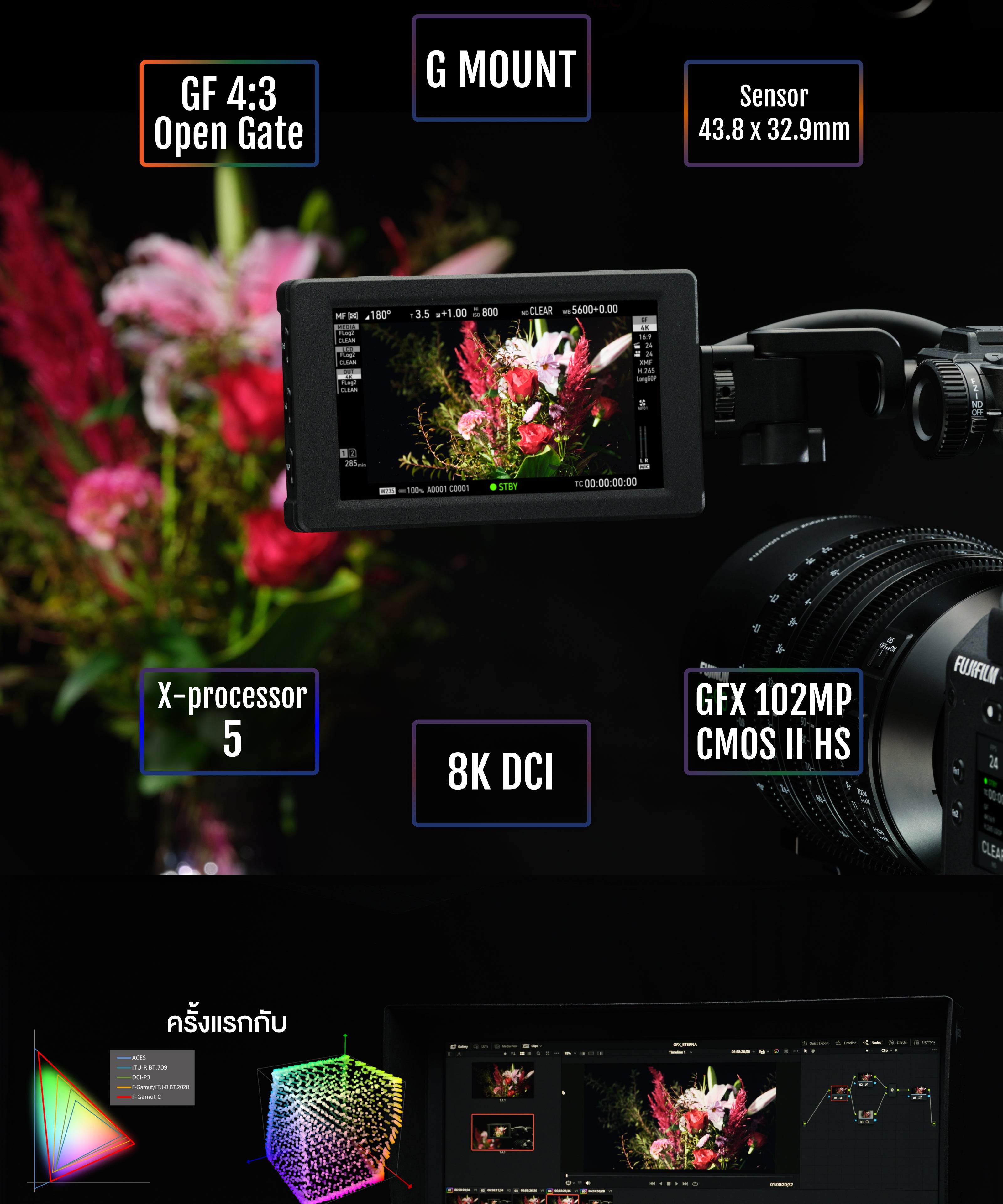 With a high resolution of up to 102MP and a vertical depth that is unmatched in the market, it delivers image quality that is sharp and detailed like never before. And with F-Log2 C technology, it can record a dynamic range of over 14+ stops, capturing every detail in highlights and shadows perfectly. With 20 Film Simulations to choose from and a 3D Film Simulation LUT , you can work professionally and get consistent colors throughout the production process.