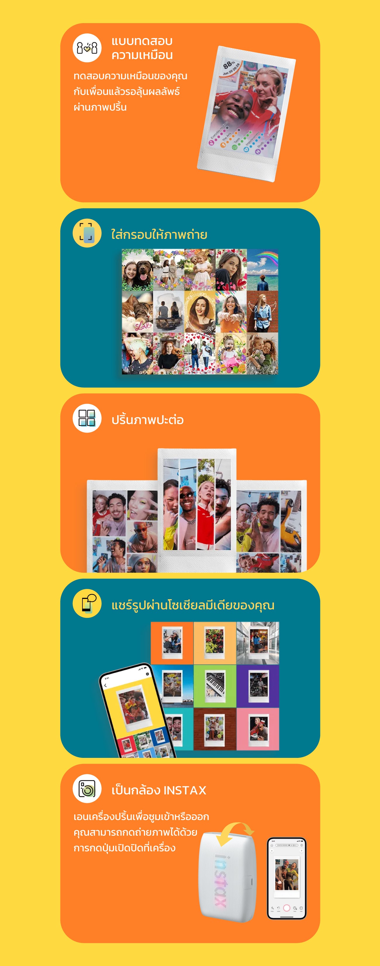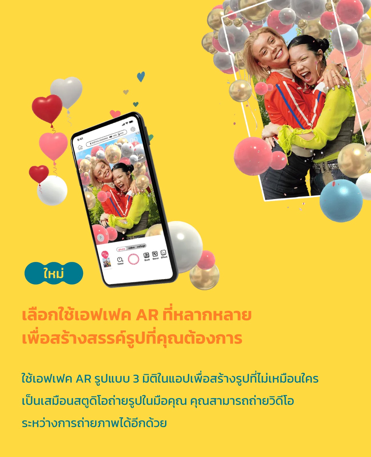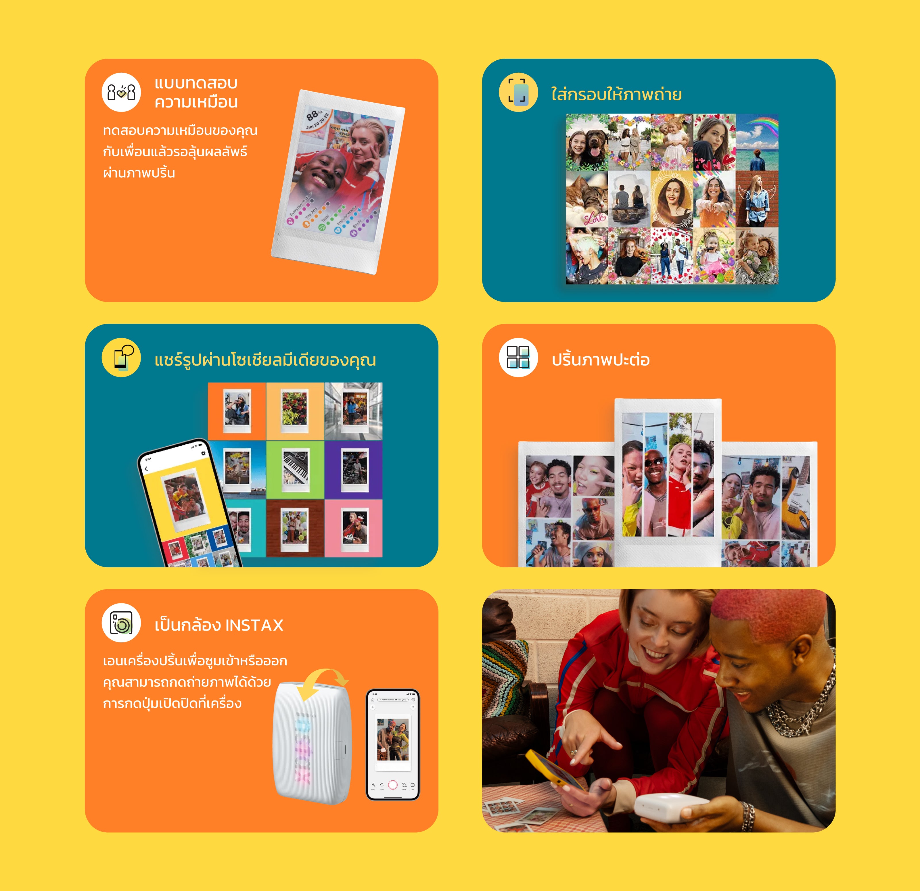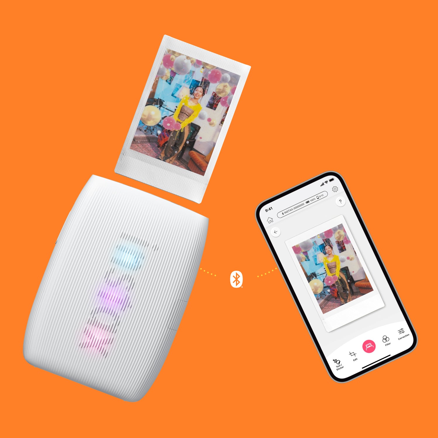 This mini film printer can print photos from your mobile phone via Bluetooth. Decorate your film with cute photo frames and filters. Stand out even more with instax air studio, which can decorate your photos with 3D AR to make you feel like you're in a studio. Instax Click to collage, you can take photos in 3 seconds like a photo booth. There are many other features as well.