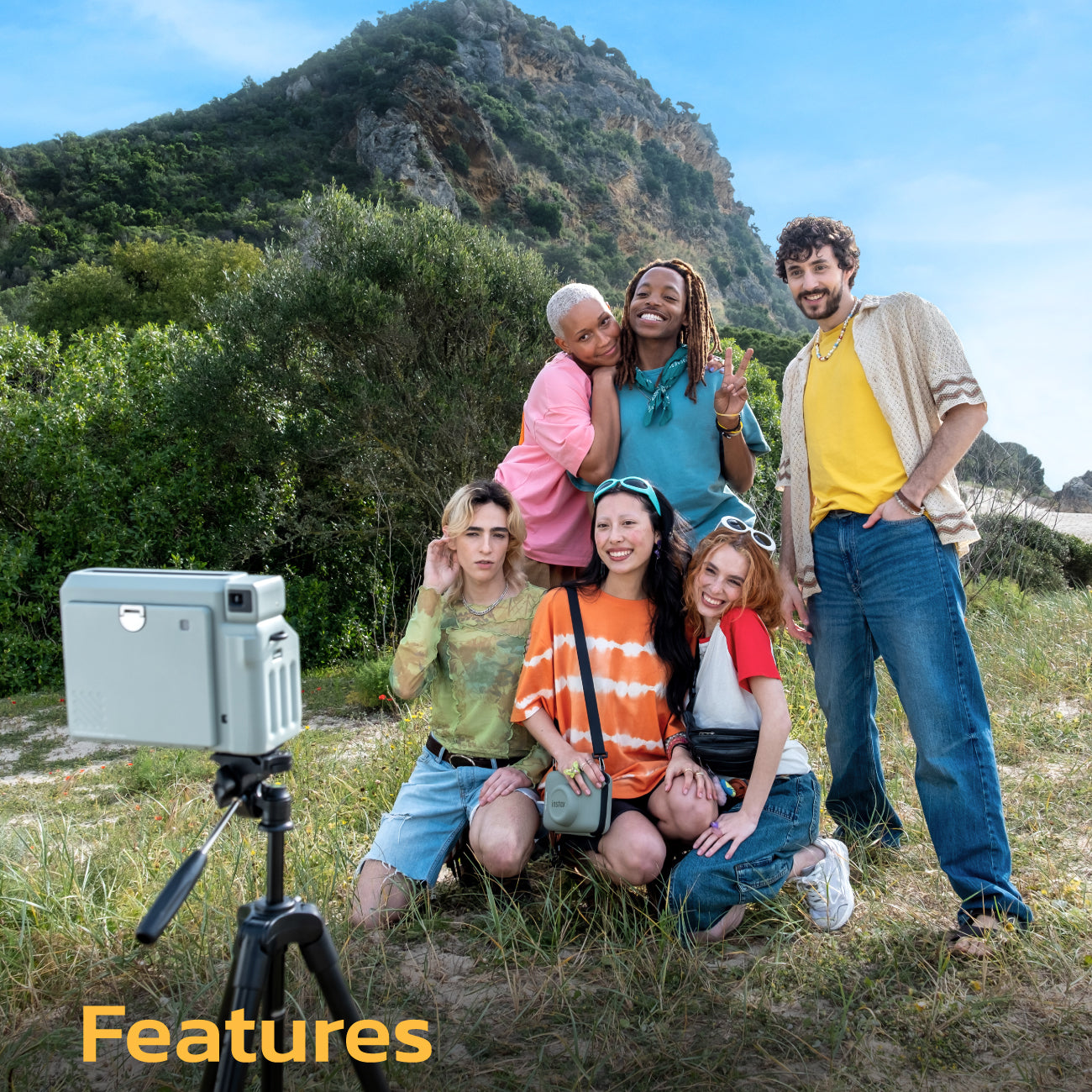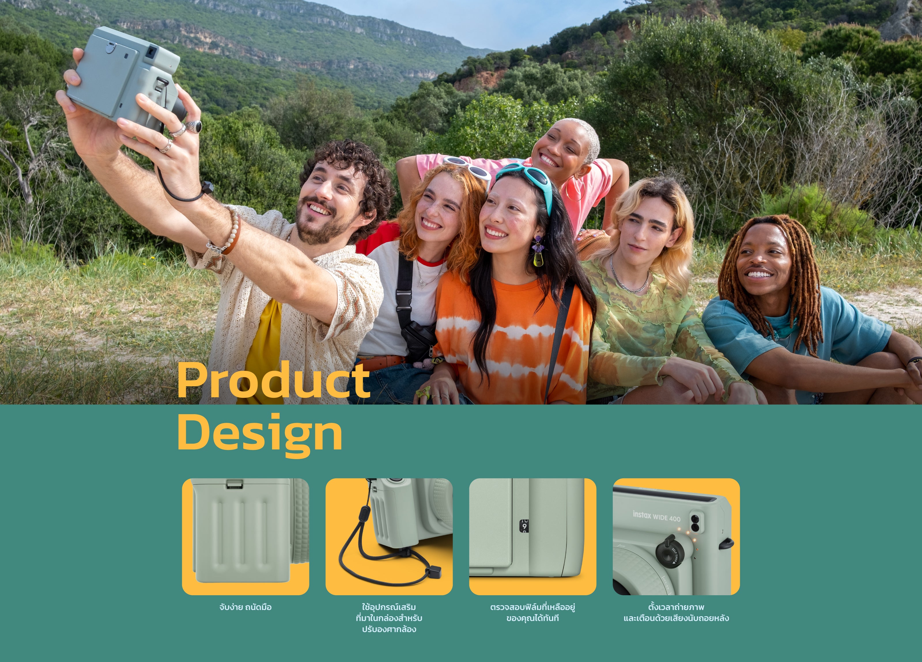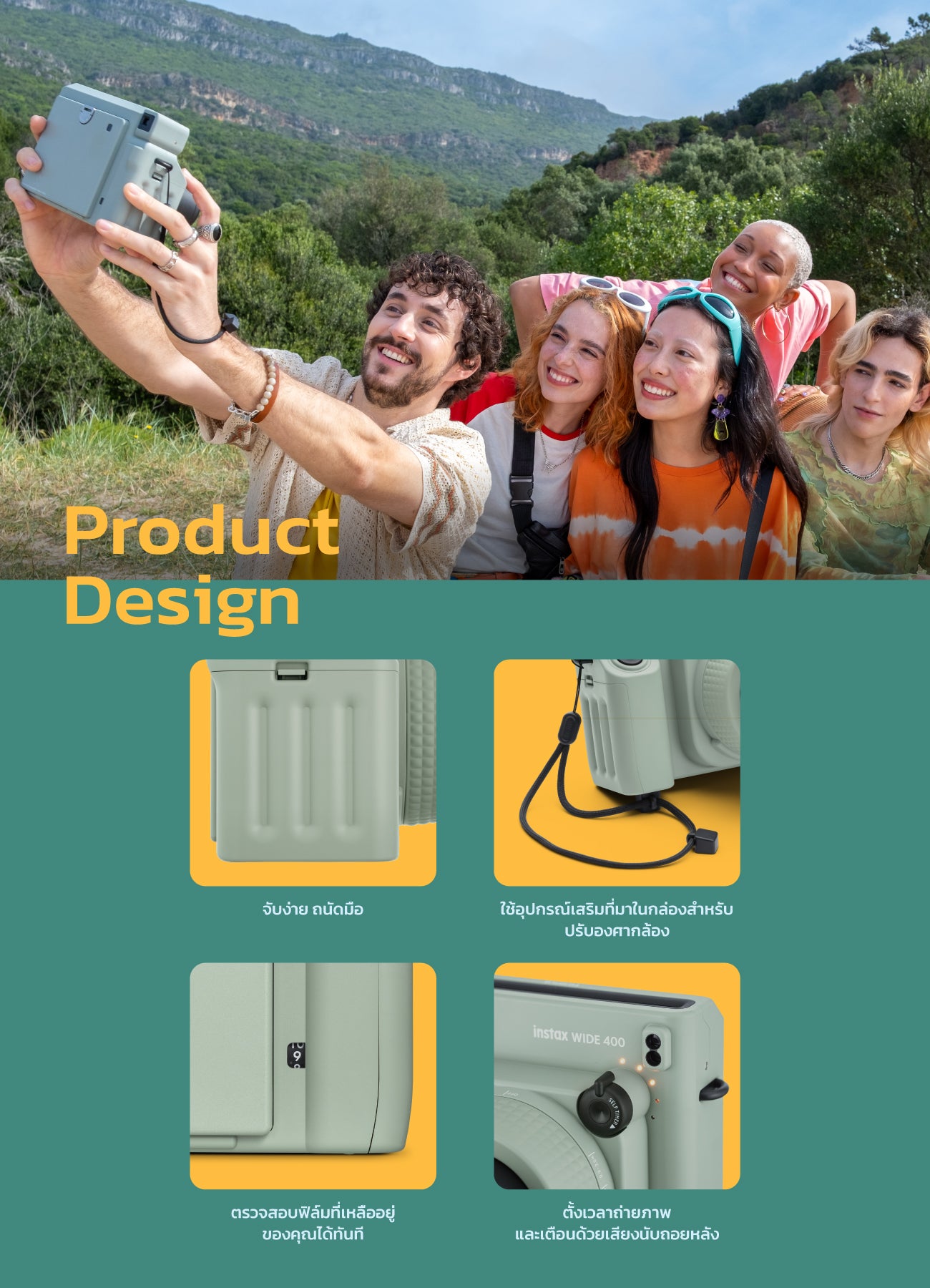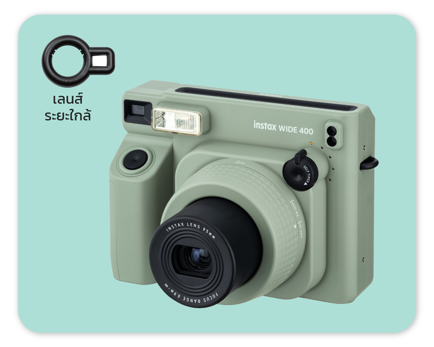 Wide film instant camera with 2 times larger film size (compared to mini size). Take beautiful photos whether outdoors or indoors with automatic light adjustment system. Comes with landscape mode when taking photos of objects 3 meters or more or use a close-up lens to take photos of objects 40 - 50 cm away. Comes with a photo timer and countdown sound from 4 to 10 seconds.