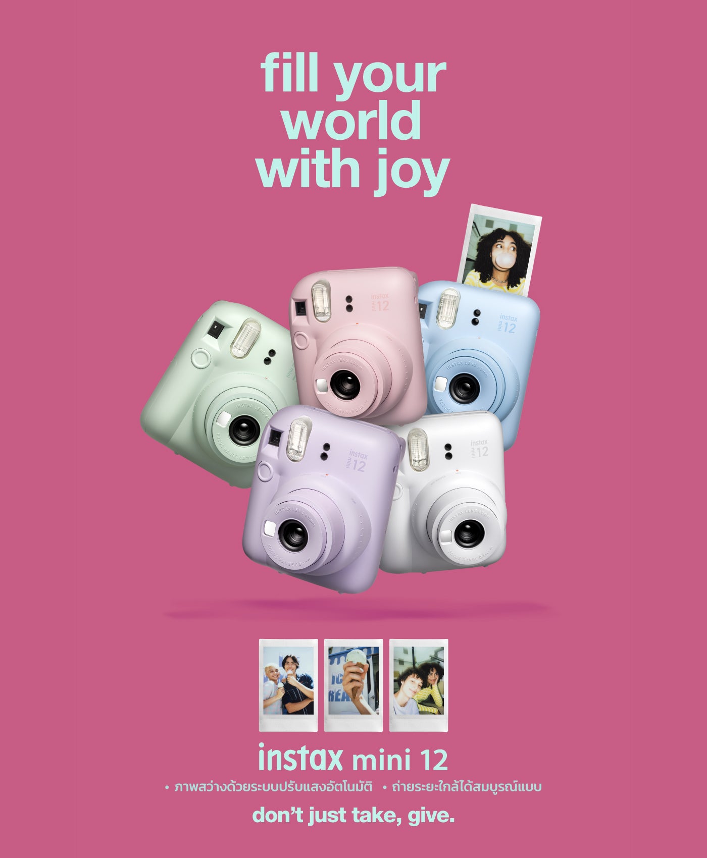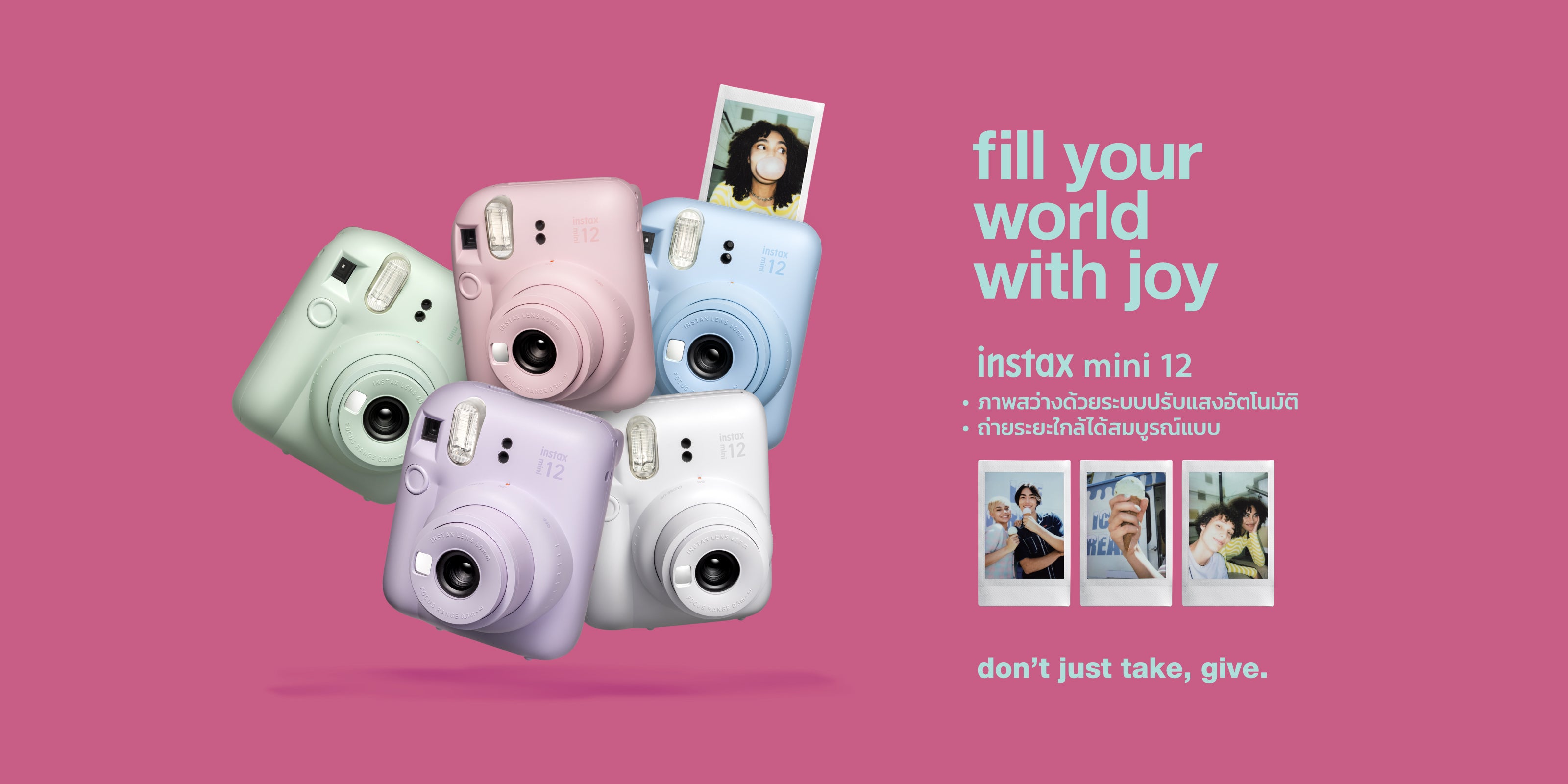 Instax mini 12 instant film camera, mini film size (film sold separately). Come take fun photos with the Instax mini 12 camera in mini film format. Easy to hold, whether outdoors or in low light, every shot is beautiful with an automatic light adjustment system. Comes with close-up mode that makes it easier for you to aim for close-up photos. Comes in cute, bright pastel colors.