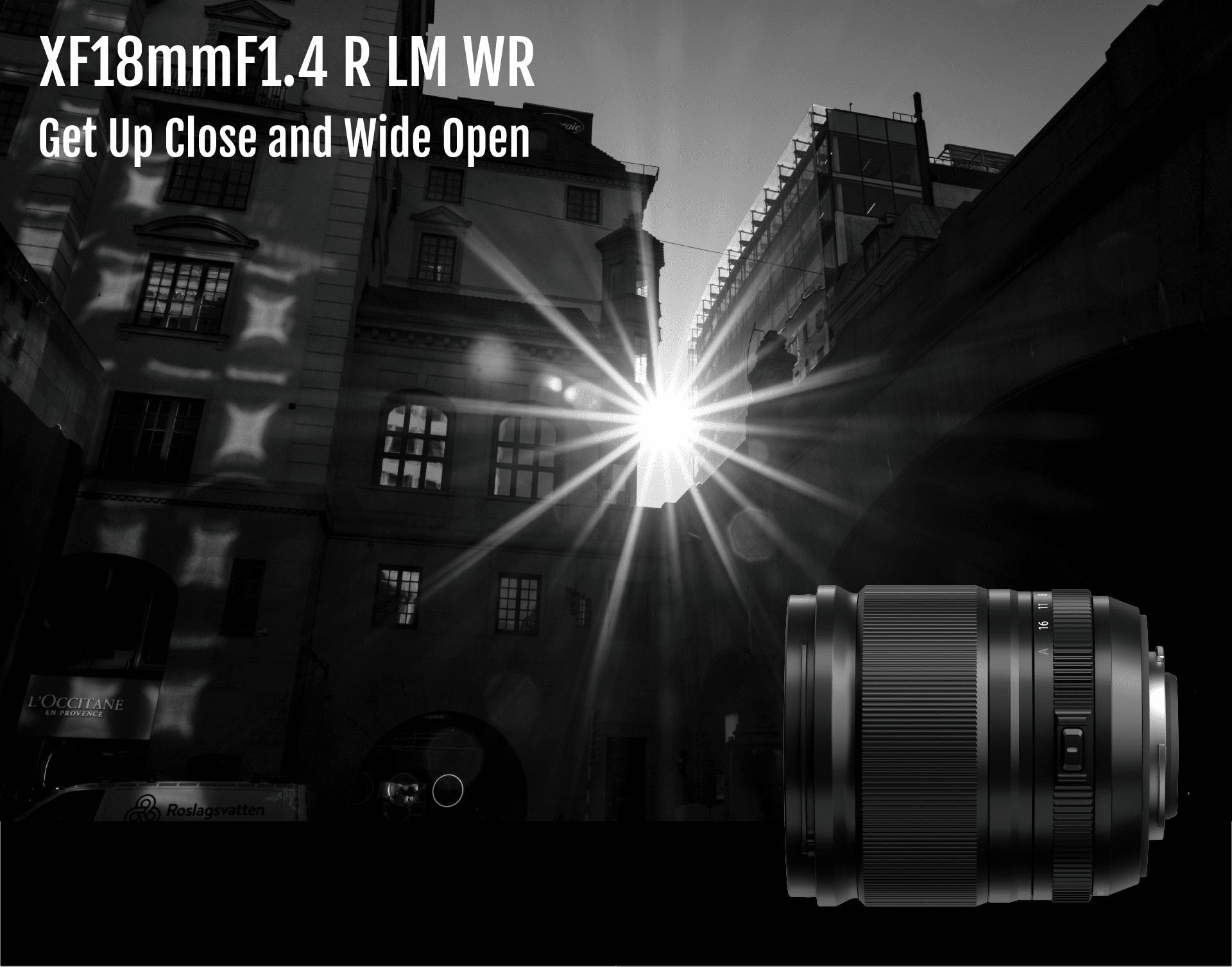 Experience and expand your horizons with the FUJINON XF18mm F1.4 R LM WR lens. Portable and versatile, it features a 27mm focal length, typical 35mm, and a landscape-oriented perspective. Equipped with a wide-angle F1.4 autofocus system and an unrivaled optical design, it dynamically follows you...