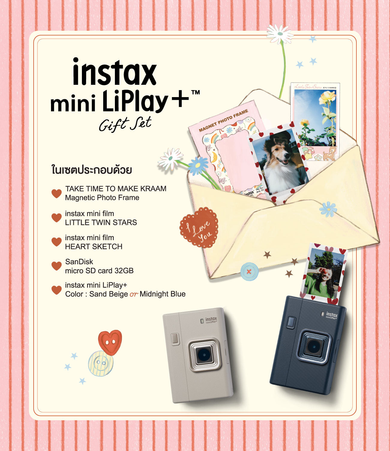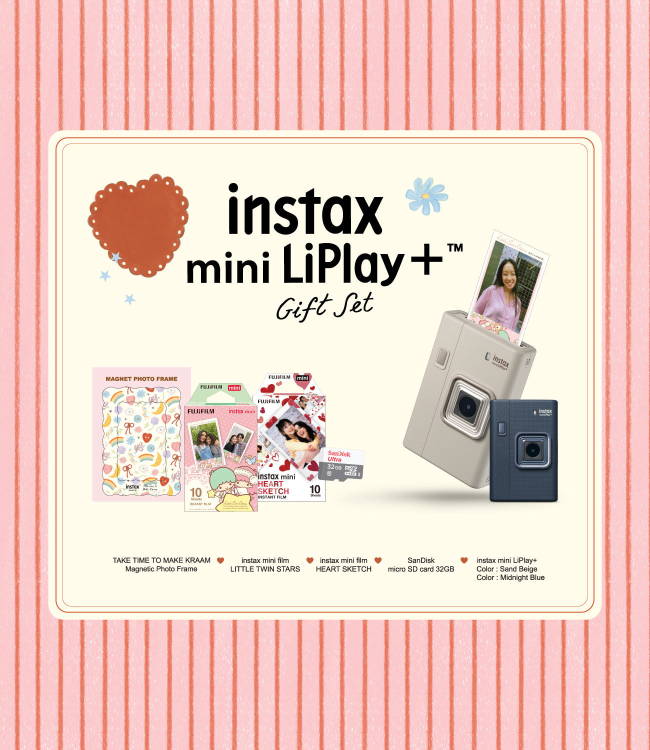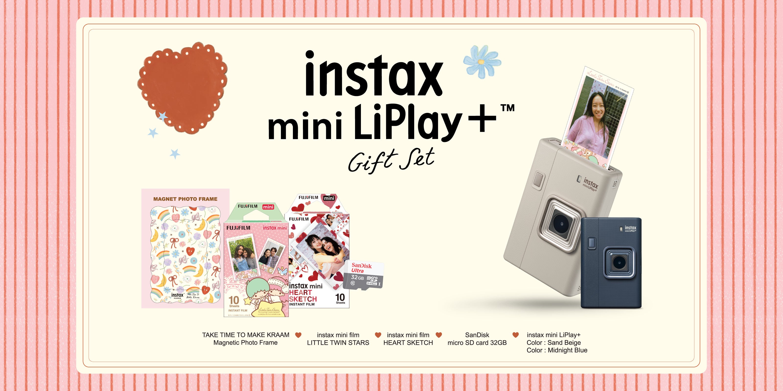 กล้องอินสแตนท์รูปแบบฟิล์มขนาด mini จะถ่ายหรือปริ้นก็ทำได้ง่ายๆผ่านบลูทูธ สามารถเลือกภาพที่จะปริ้นได้ หรือจะเลือกภาพจากช๊อต VDO ก็ทำได้ มาพร้อมฟิลเตอร์ฟิล์ม และกรอบรูปตกแต่งกว่า 30 แบบที่จะทำให้รูปฟิล์มของคุณโดดเด่นไม่ซ้ำใคร สามารถบันทึกเสียงในรูปแบบ QR code ได้บนภาพฟิล์ม