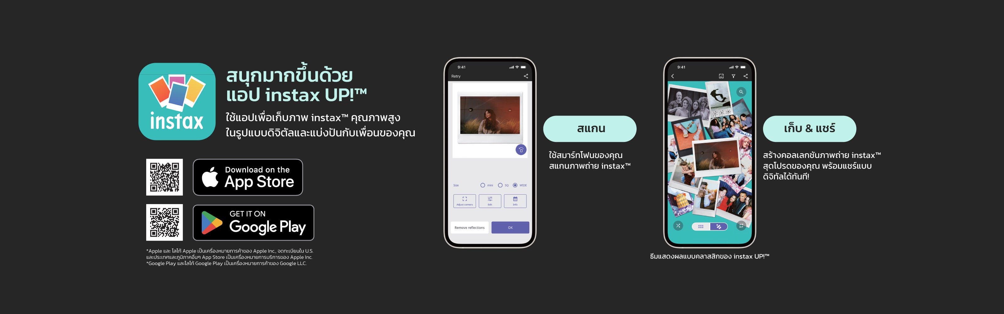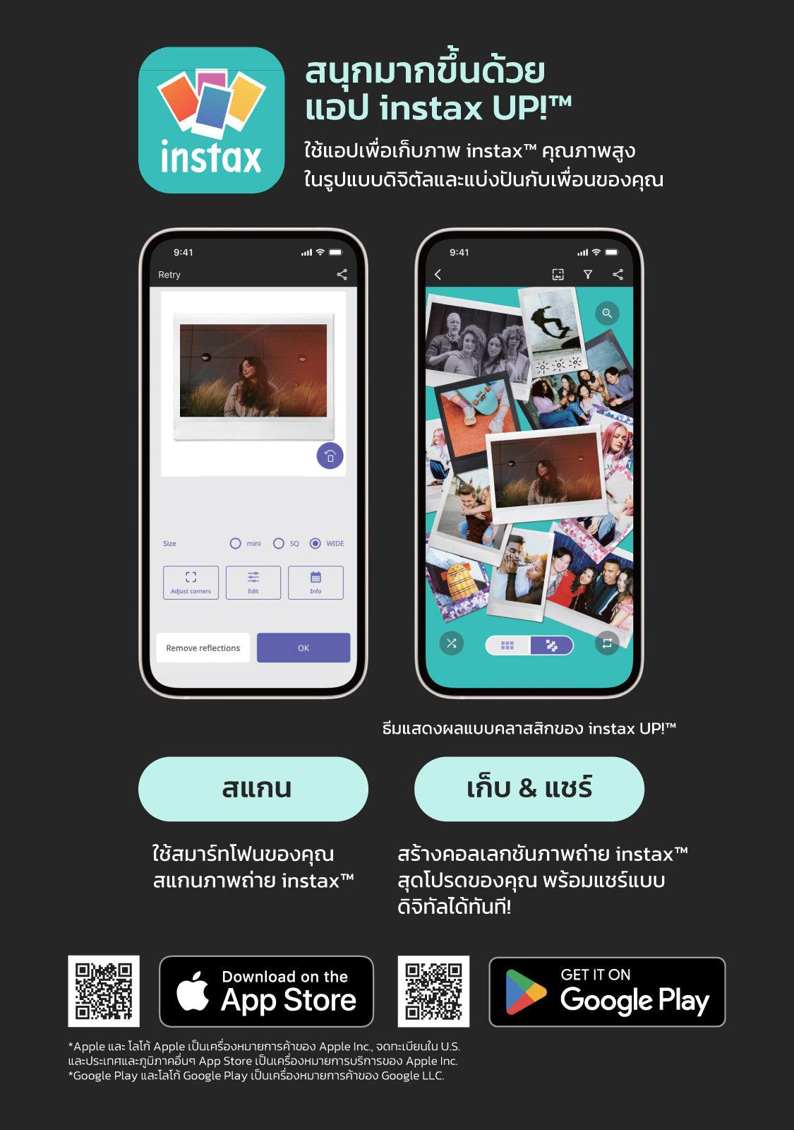 กดยินยอมในแอปจากนั้นโพสต์รูปภาพของคุณบนINSTAGRAM พร้อมใส่แฮชแท็ก #instaxwideevoเพื่อให้รูปแสดงใน Discover Feed